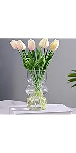 8 inch Clear Glass Flower Vases for Centerpiece Table Home Indoor Desk Decor,Ins Modern Boho Style Vase for Wedding Housewarming Gift