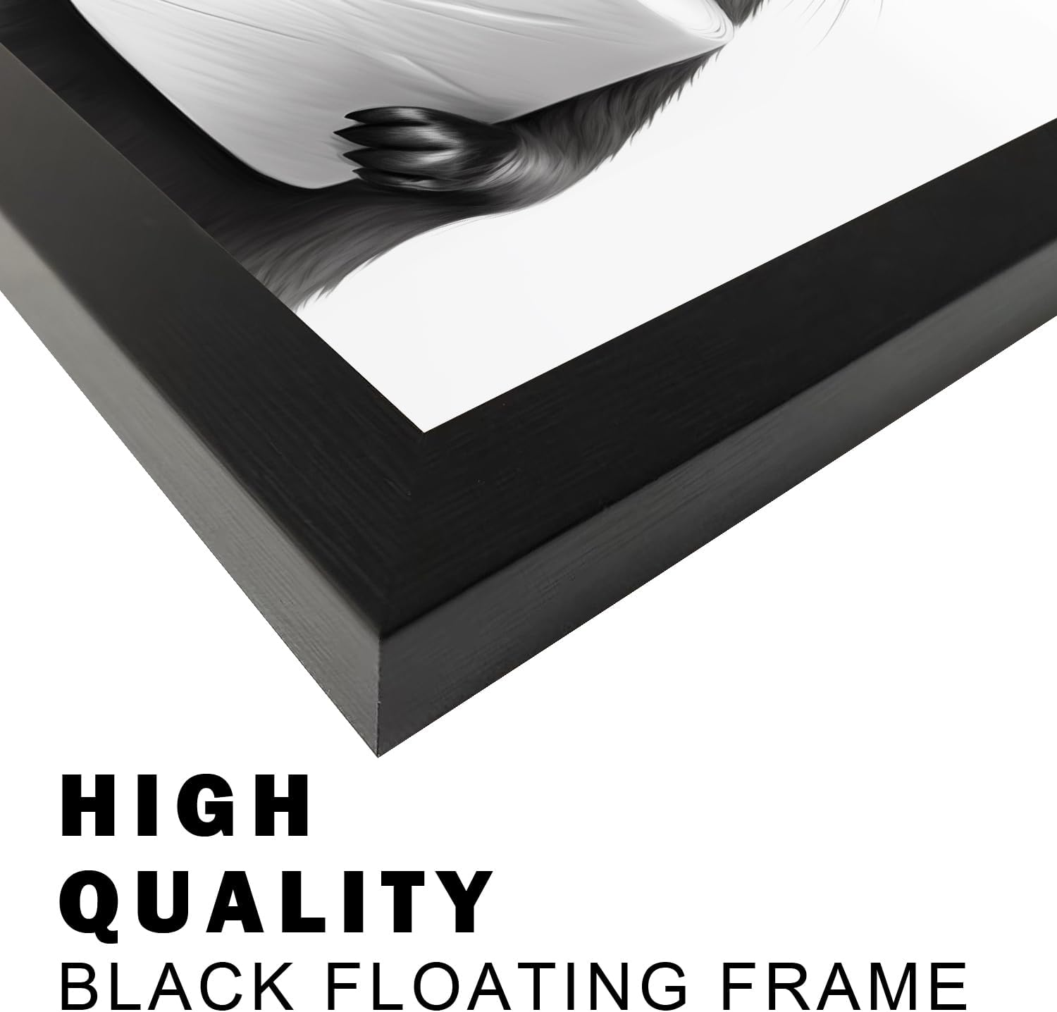 This framed black and white raccoon bahtroom wall art is Giclee artwork, Eco-ink resolution, printed on water-proof canvas.