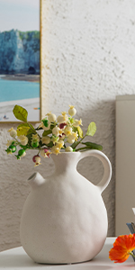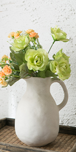 The rustic vase features two gracefully curved handles, meticulously handcrafted. Handcrafted texture on its surface, providing a tactile sensation akin to hand-molding. Its generous size allows for a variety of floral arrangements, from vibrant bouquets to delicate sprigs, bringing life and color to any space.