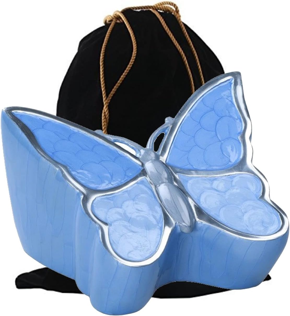 MEMORIALS4U Butterfly Sculpture Cremation Urn - Handcrafted Metal Urn for Human Ashes - Artistic Urn with Velvet Bag (White Adult)