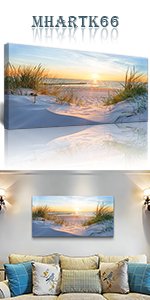 MHARTK66 Wall Decor For Living Room Large Canvas Wall Art For Bedroom Modern Office Pictures Wall Artwork Blue Sun Beach Grass Ocean Landscape Paintings Canvas Art Prints Home Decorations