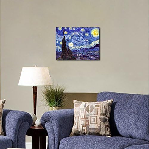 Wieco Art Starry Night Canvas Print of Van Gogh Oil Paintings Reproduction Modern Canvas Print Artwork Abstract Landscape Pictures Printed on Canvas Wall Art for Home Office Decorations